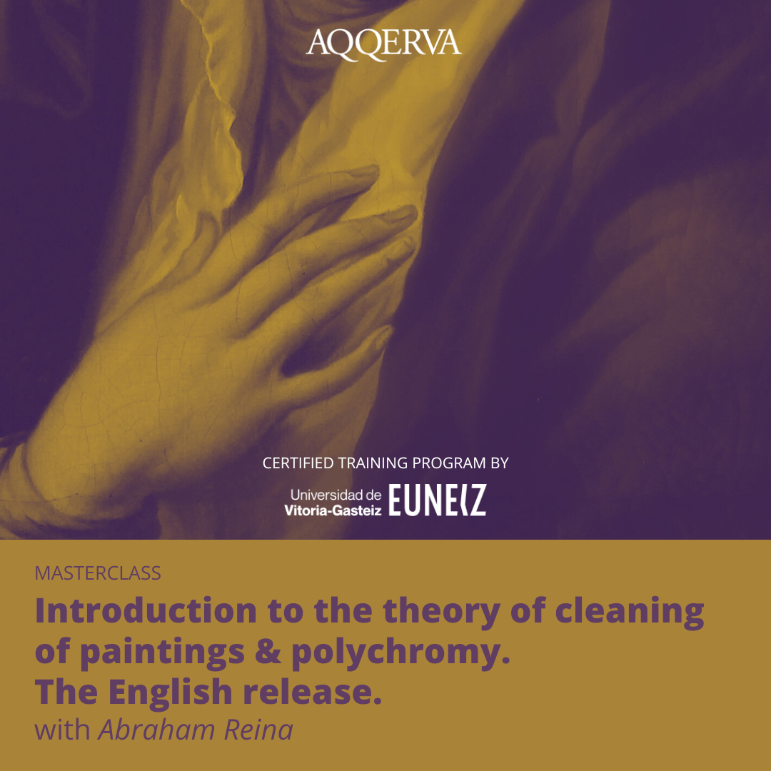 In this theoretical seminar by Aqqerva, you will delve into all aspects related to the cleaning of paintings and polychromy from the ground up. Beginning with the study of families of the main organic solvents used in restoration, including the factors influencing the solvent power of a liquid, to exploring the types of thickeners that have emerged in recent years in this field. Additionally, this course covers other crucial aspects such as pH control and contemporary cleaning alternatives when restoring the pictorial layers of an artwork. As an online course, you can progress at your own pace from the comfort of your home. Geared towards beginners, this course is ideal if you feel you have limited knowledge in this field or wish to acquire new information. Focused on this specific subject, you will discover the foundations, techniques, and proven methods necessary to master it. You can review the content as many times as needed. This course is designed for conservators, restorers, or students of Conservation and Restoration, and in all cases, proof of this condition is required through an official degree or similar document. To enroll and take the course, simply add it to your cart and complete the purchase. Course access is immediate upon payment, accessed through CAMPUS > MY COURSES. To ensure the certificate is issued correctly, you must register with your full name and add your ID number in the order note field, as this information will appear on the diploma. Upon successful completion of the course, new registrations starting from January 2024 receive a completion diploma from the University of Vitoria-Gasteiz EUNEIZ as a permanent training course.